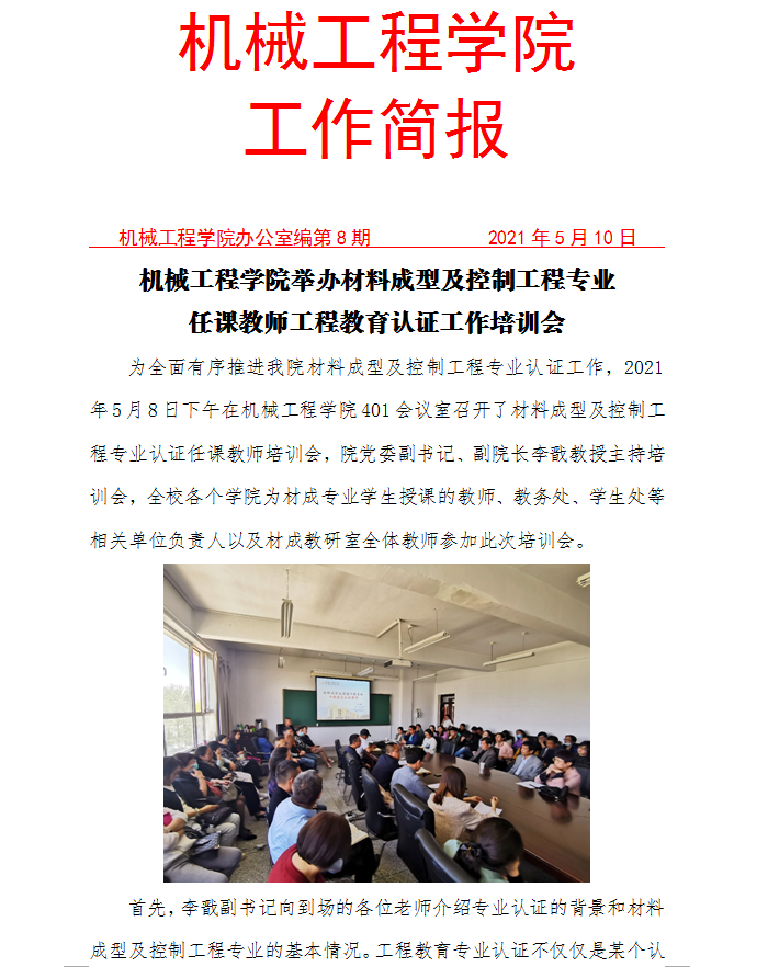 裸体直播 举办材料成型及控制工程专业任课教师工程教育认证工作培训会