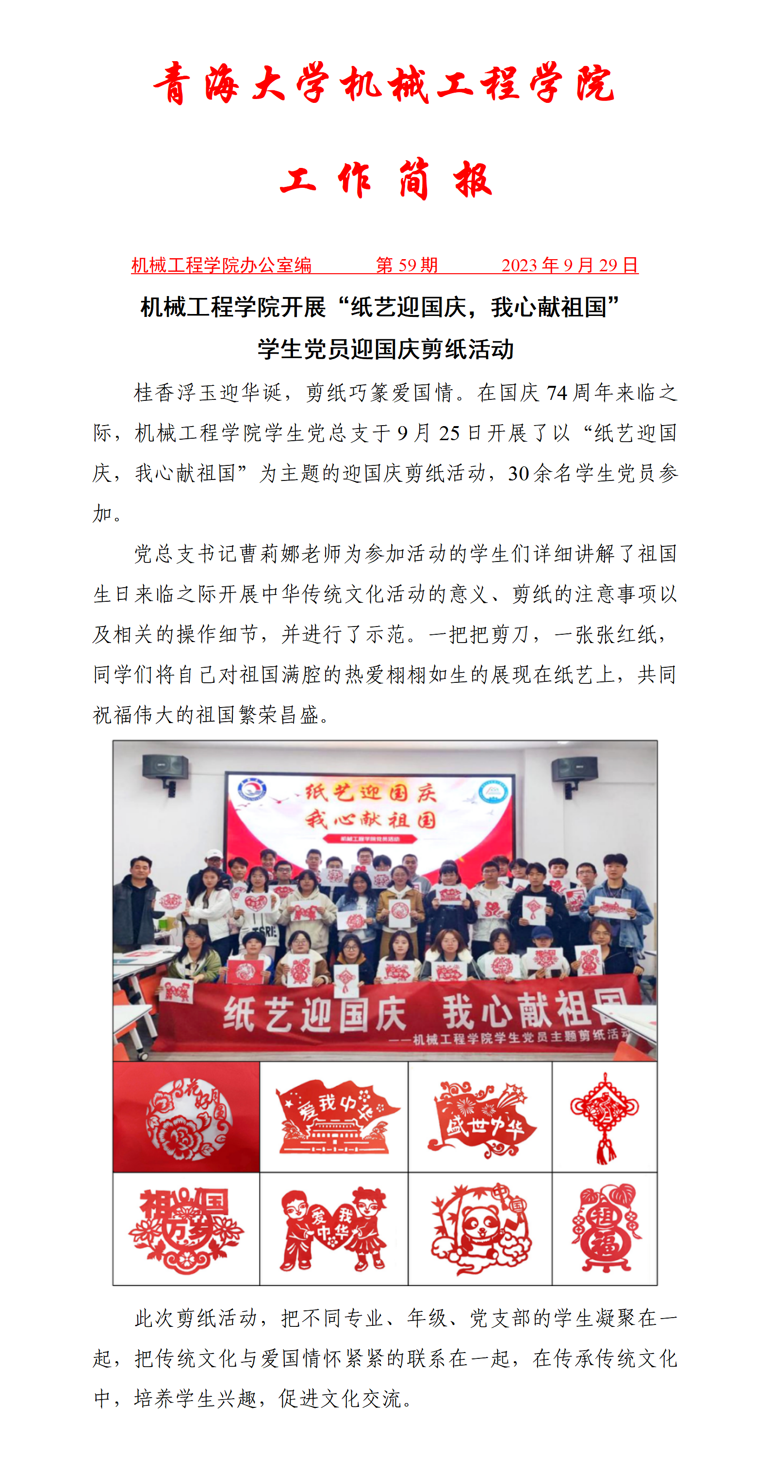 裸体直播 开展“纸艺迎国庆,我心献祖国”学生党员迎国庆剪纸活动