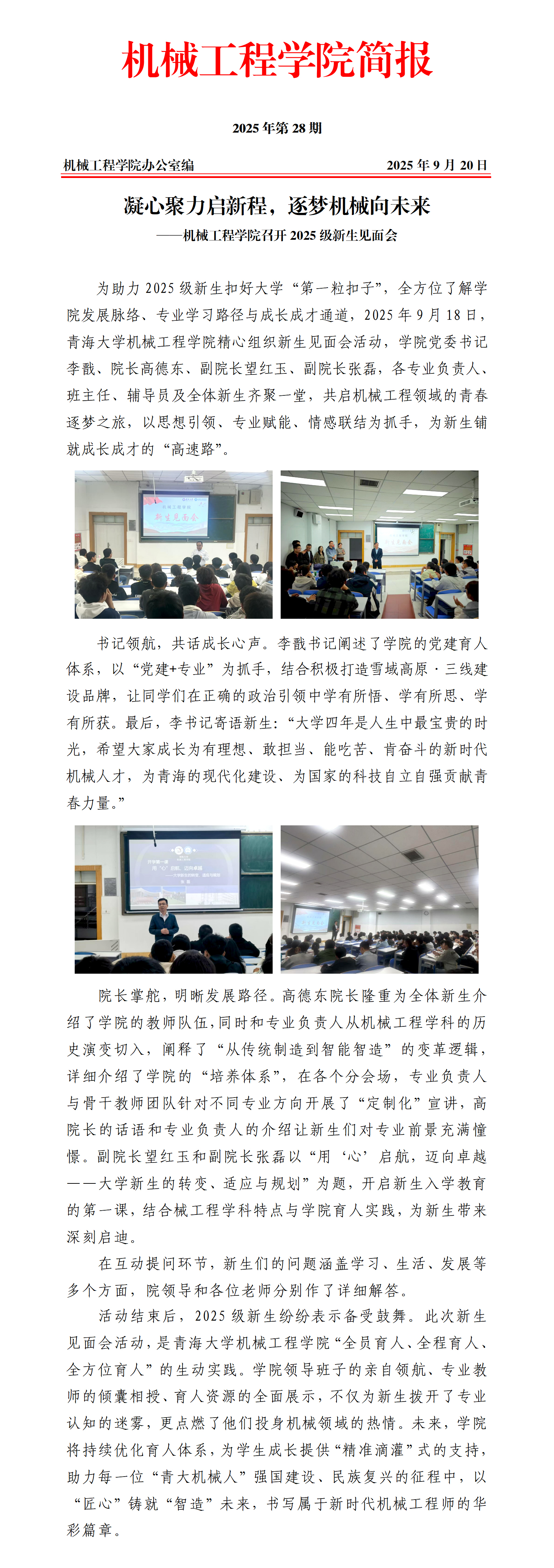 凝心聚力启新程,逐梦机械向未来 —— 裸体直播 召开2025级新生见面会