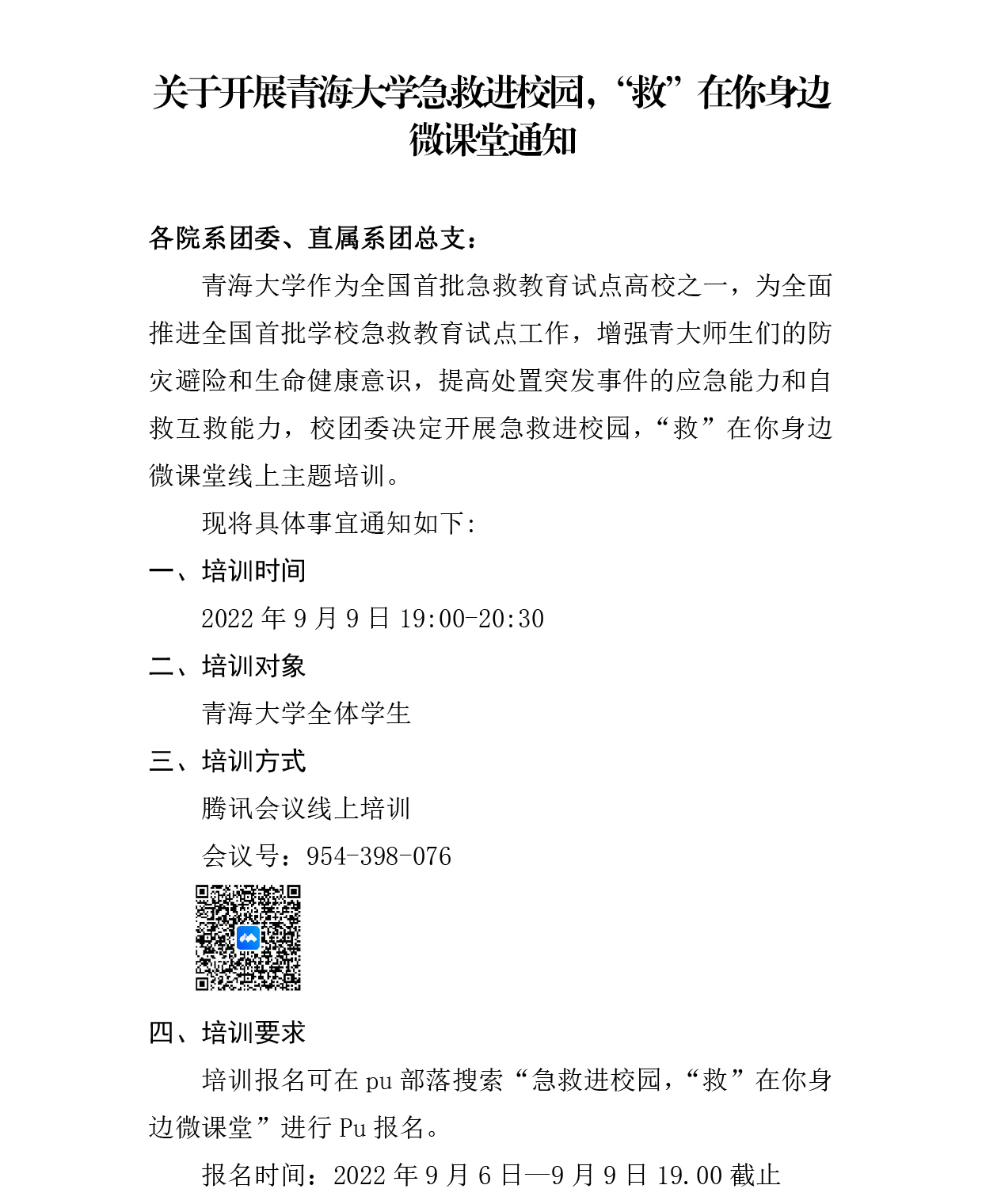 关于开展裸体直播 急救进校园,“救”在你身边微课堂通知