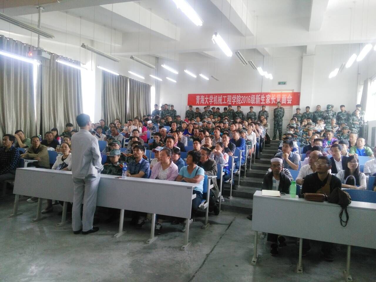 为了更好地管理学生,学院8月28日下午14时,在财院106教室召开了新生家长见面会,会上院领导向新生家长介绍了学院的专业设置、师资情况、大类如何选择专业、并回答了家长的咨询;学管部老师向家长介绍了学院学生管理理念,发放了《学院给新生家长的一封信》,强调了家长、校方、学生三方管理模式,特别要求学生学会自主管理。家长会气氛热烈,受到了家长的一致好评。