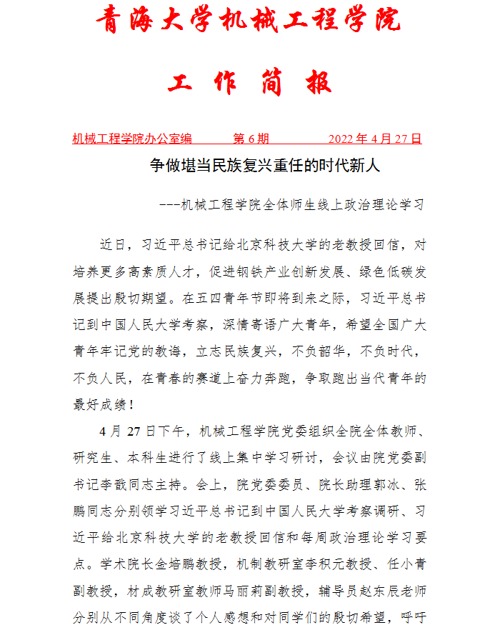 争做堪当民族复兴重任的时代新人 ---裸体直播 全体师生线上政治理论学习
