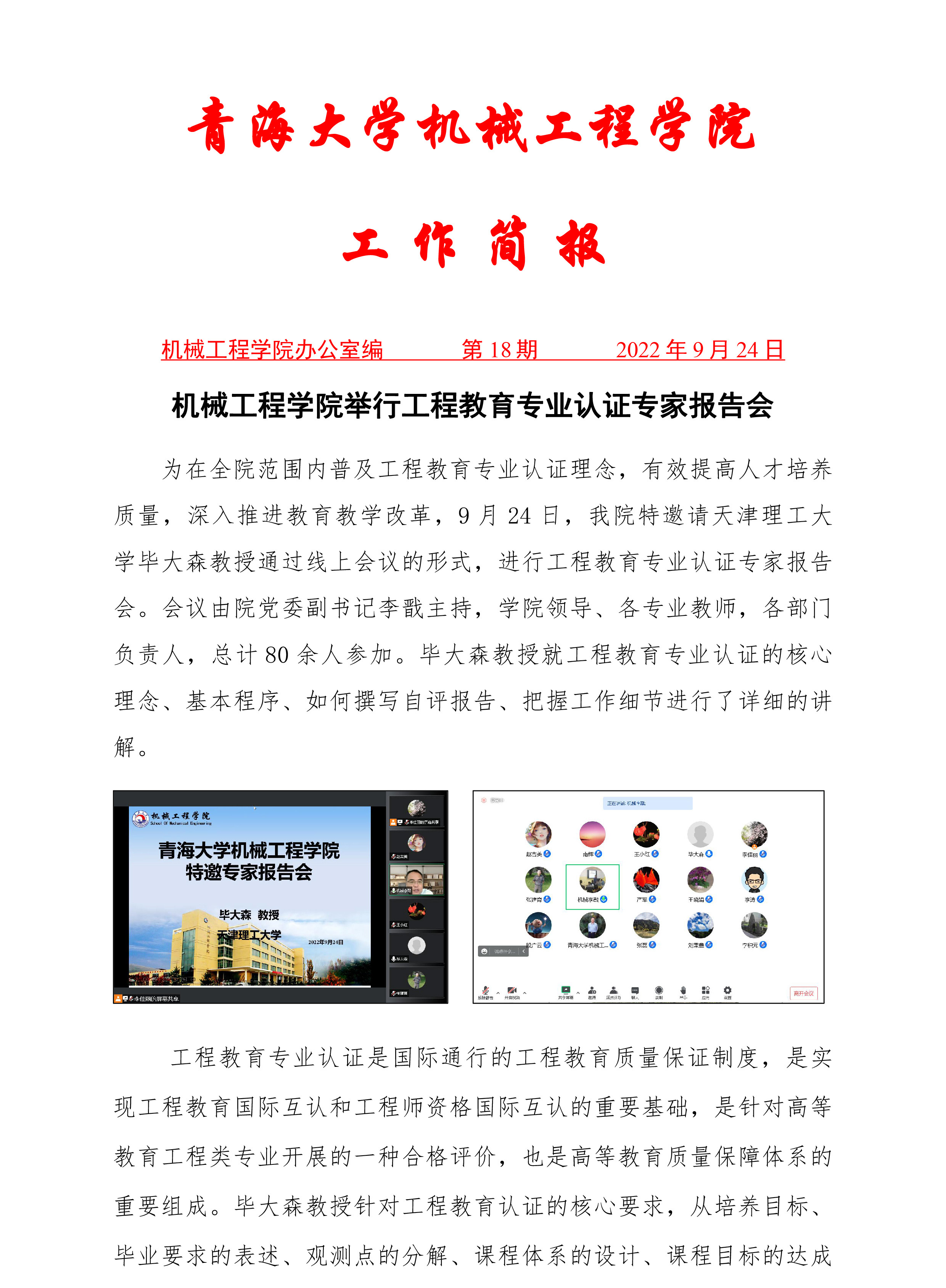 裸体直播 举行工程教育专业认证专家报告会