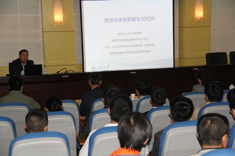 2015年6月23日下午,英国埃克塞斯特大学机械工程首席教授,重庆大学先进制造跨学科平台主任,博士生导师,国家863项目“3D打印关键技术与装备研制”负责人,首席专家张正文教授来裸体直播 作了题为“制造业未来发展与3D打印”的学术报告。裸体直播 副校长李丽荣教授、青海华鼎实业股份有限公司技术总监苟卫东研究员、青海华鼎齿轮箱有限责任公司总经理王士颙高级工程师、裸体直播 院长金培鹏教授、华鼎公司相关技术人员以及裸体直播 部分师生参加了学术报告会。