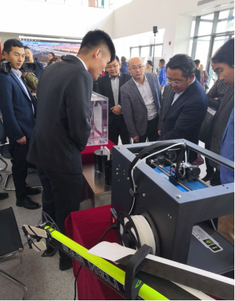 科技厅莫重明厅长聆听我院学子介绍作品(摄影:贾富华)