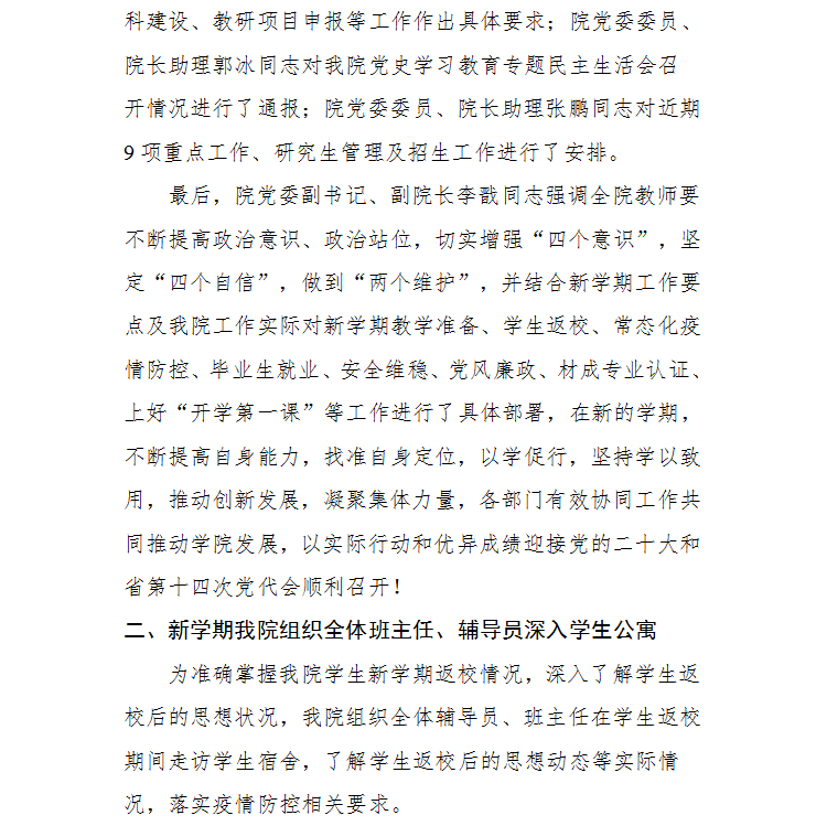 新起点、新征程 ——裸体直播 有序推进新学期各项工作