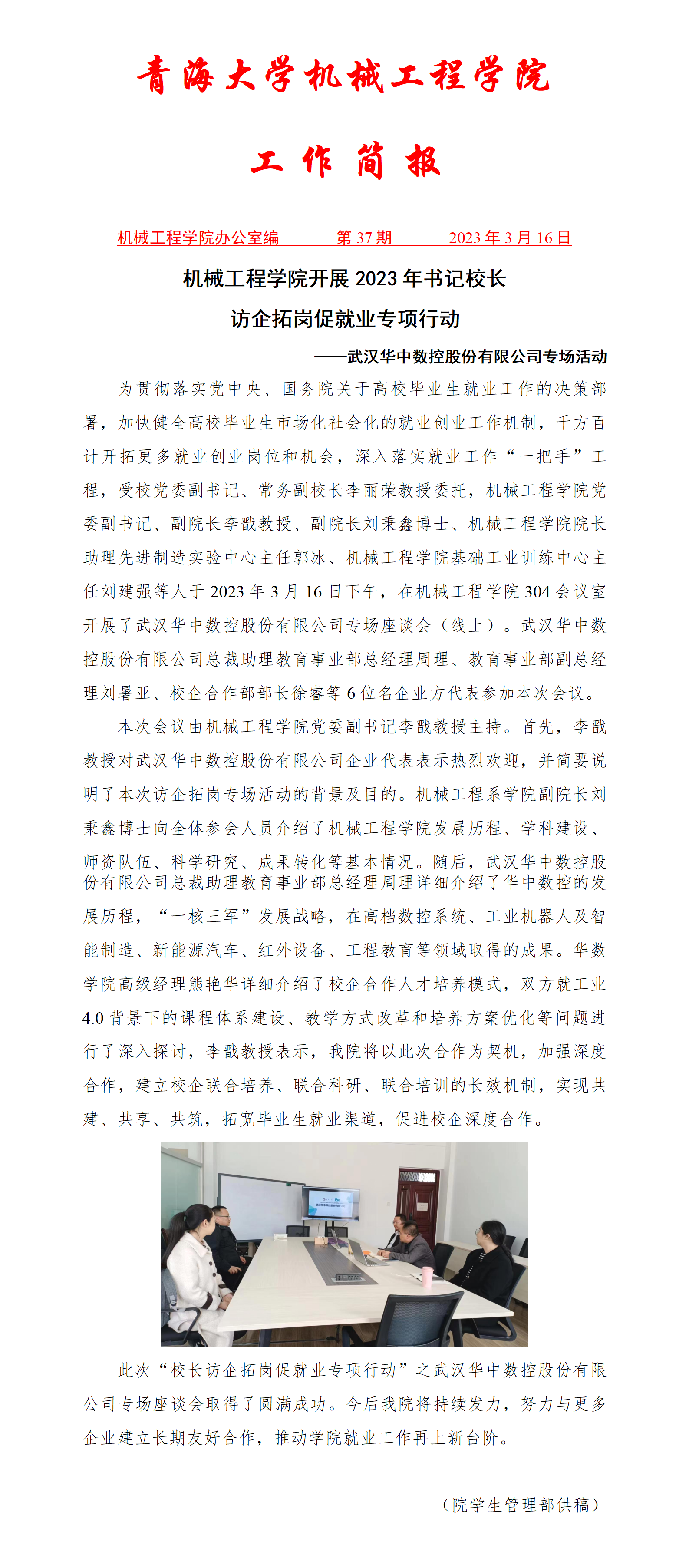裸体直播 开展2023年书记校长访企拓岗促就业专项行动——武汉华中数控股份有限公司专场活动