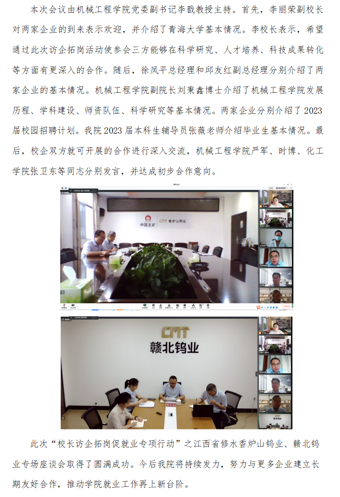 裸体直播 开展2022年书记校长访企拓岗促就业专项行动 ——江西省修水香炉山钨业、赣北钨业专场活动